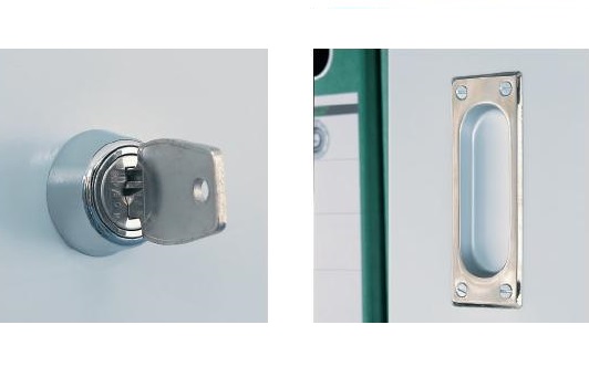 Différentes largeurs, profondeurs et hauteurs pour une adaptation à l'espace. lorsqu'elles sont ouvertes, les portes ne bloquent pas les passages étroits. Les portes à mouvements légers sont équipées de systèmes de suspension spéciaux et de butoirs en gomme au niveau des butées garantissant une utilisation silencieuse. Elles sont monoblocs et garantissent donc une grande solidité pour un usage d'atelier. Les parois médianes pour les armoires largeur 1500 et 2000 mm ajoutent à cette robustesse. Les poignées en cuvette métallique donnent à nos armoires une finition ergonomique.