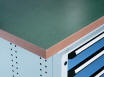Universal de 50 mm d'épaisseur, revêtement antistatique, résistant aux frottements, à l'huile, aux graisses, aux solvants usuels, aux faibles acides. Chants en bois de 4 mm d'épaisseur. Coloris: vert clair marbré.