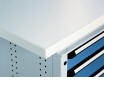Stratifié avec revêtement électro-zinguée, plateau épaisseur 40 mm avec tôle électro-zinguée, anti-corrosion. Chants en PVC gris de 3 mm d'épaisseur.