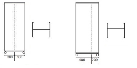 – paroi de séparation au milieu à 300 mm ou paroi de séparation asymétrique en décale à 400 | 200 mm